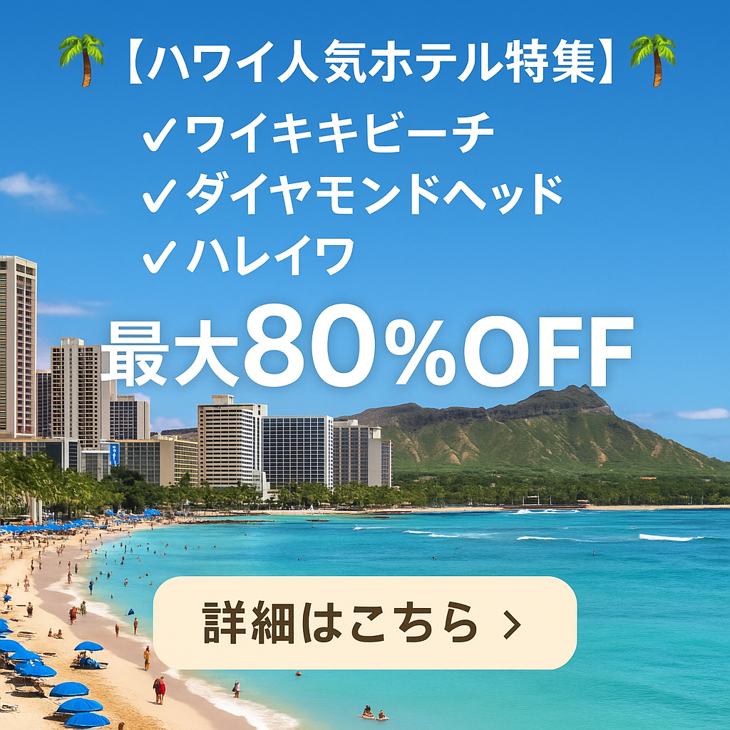 ハワイは年間を通じて温暖な気候と美しいビーチ、豊かな自然やグルメで世界中の旅行者に人気のリゾート地です。当サイトでは、ワイキキ・ホノルル・アラモアナ・カイルアなど主要エリアを中心に、ハワイの人気ホテルを一括比較し、最安値情報をわかりやすくまとめています。ワイキキビーチ沿いのオーシャンビューリゾートホテルから、家族旅行に便利なキッチン付きコンドミニアム、カップルに人気のラグジュアリーホテル、リーズナブルに泊まれるビジネスホテルまで、目的や予算に応じた最適な宿泊先を見つけることが可能です。また、プールやスパ、フィットネスジムが充実したホテル、ハネムーンに最適なスイートルーム完備のホテル、ショッピングモール直結のホテルなど、それぞれの特徴とおすすめポイントも詳しく解説しています。さらに各予約サイトの価格差を比較することで、同じホテルでもよりお得に予約できます。浮いた予算でハワイグルメやアクティビティ、ショッピングを存分に楽しみましょう。ハワイで快適な滞在を実現するために、officials.tokyoの最安値比較情報をご活用ください。